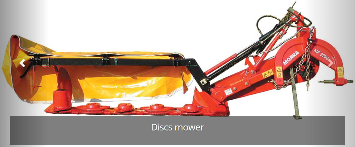 Our 6 disc mower and his design guarantees excellent durability and power absorption. The disc’s shape prevents hay build-ups and it can be easily removed and replaced without disassembling the entire cutting bar. The hydraulic lift gives max stability and safety while on the road since the mower does not lean over. Large diameter drive line with gears protected against heavy impact. Thanks to excellent construction quality, ordinary maintenance is quick and almost inexpensive.